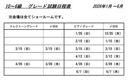 ・グレード受験時間は受験日の約3週間前に発表いたします。